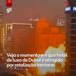 O que o vídeo mostra? Publicado nesta segunda-feira (2) no X, onde teve mais de 8 milhões de visualizações, o post tem a seguinte legenda, em inglês: “Disparamos 1.800 mísseis contra o Burj Khalifa. Todos os mísseis atingiram o alvo”. Com dez segundos de duração, o vídeo supostamente mostra o arranha-céu mais alto do mundo, que fica em Dubai, tomado por chamas, com uma grande coluna de fumaça escura. Há várias pessoas na rua, algumas correndo, e outras filmando com celulares.